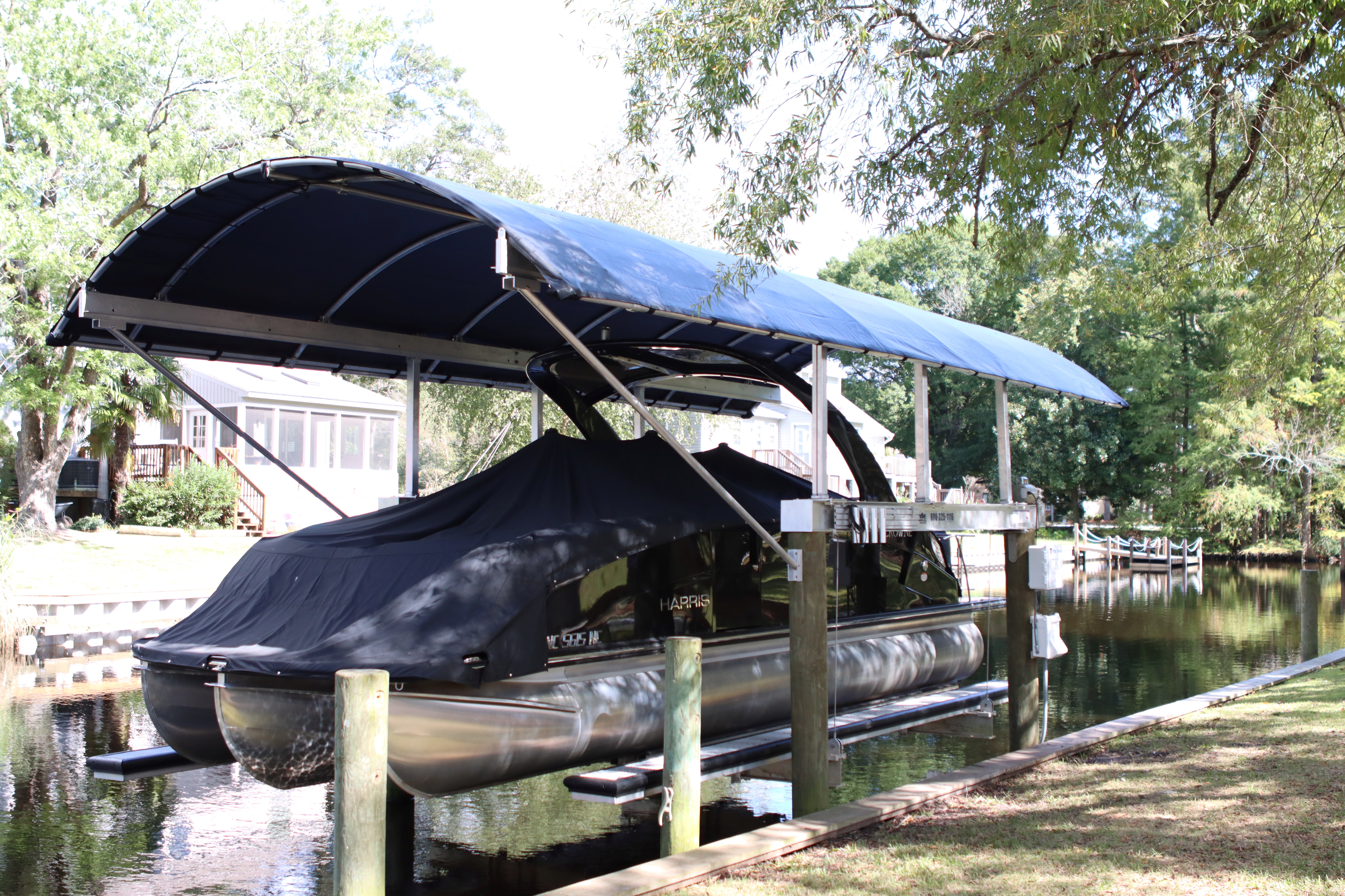 Reduce Cleaning and Maintenance: Canopies help reduce debris buildup, bird droppings, and dirt that accumulate when boats are left uncovered on a lift.